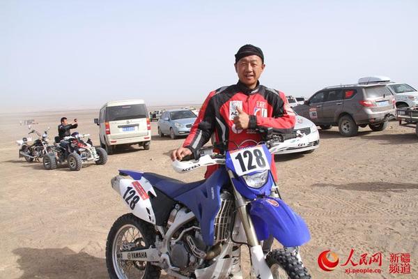 人民網(wǎng)吐魯番10月24日電(王濤 徐蒙)在2015年中國(guó)·吐魯番第十屆環(huán)艾丁湖摩托車越野拉力賽中,現(xiàn)年45歲的128號(hào)車手—新疆某酒店管理有限公司董事長(zhǎng)付光華本來可以分在老年組“驥翼組”,但他堅(jiān)決要求分在年輕人組別里,要和年輕人一較高低。