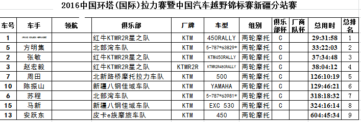 前八賽段摩托車組成績總排名如下(點擊看大圖):
