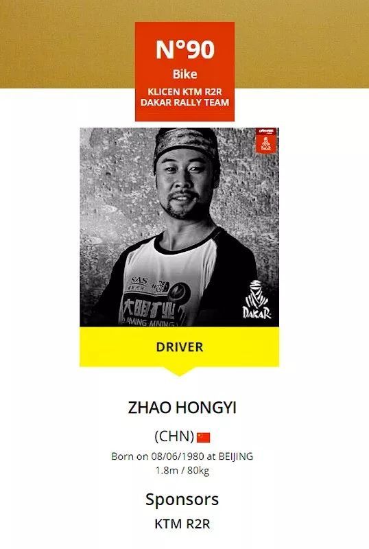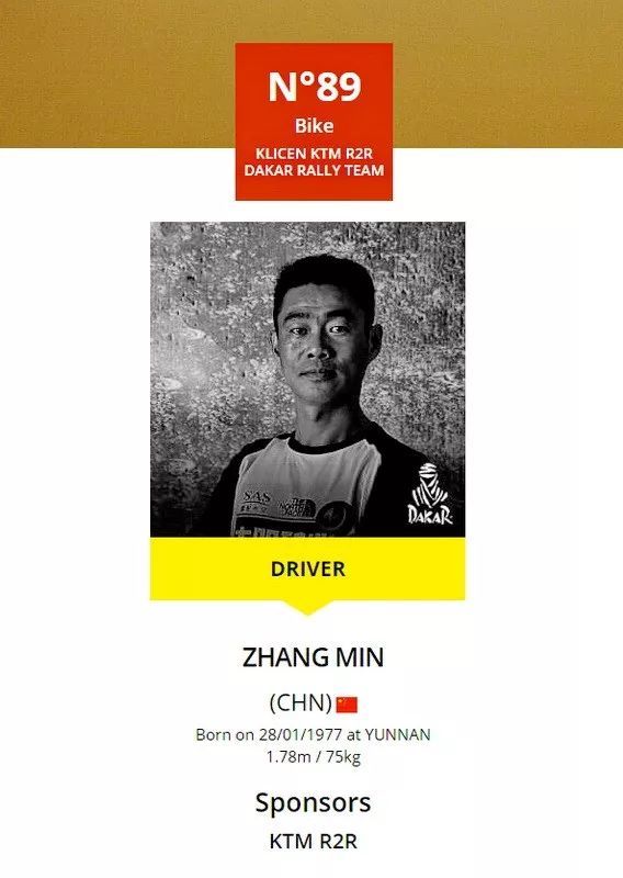 參考官方公布的 2019' 達喀爾拉力賽參賽名單,兩名中國車手已經確認參賽,分別是 89 號車的張敏、以及 90 號車的趙宏毅,主贊助商是 KTM R2R。