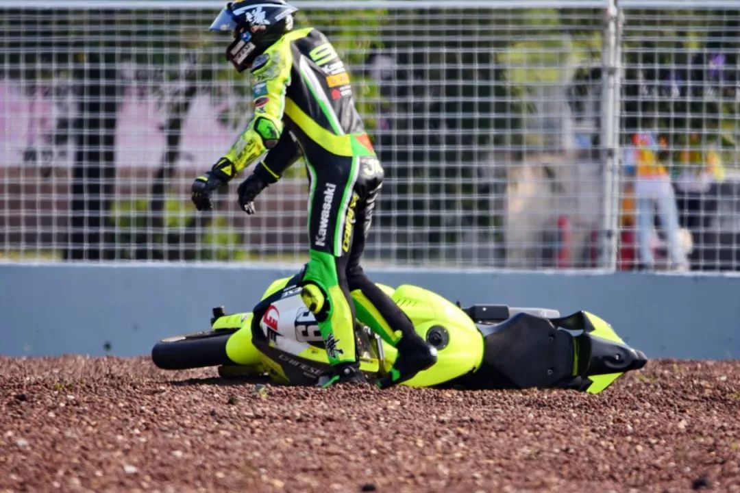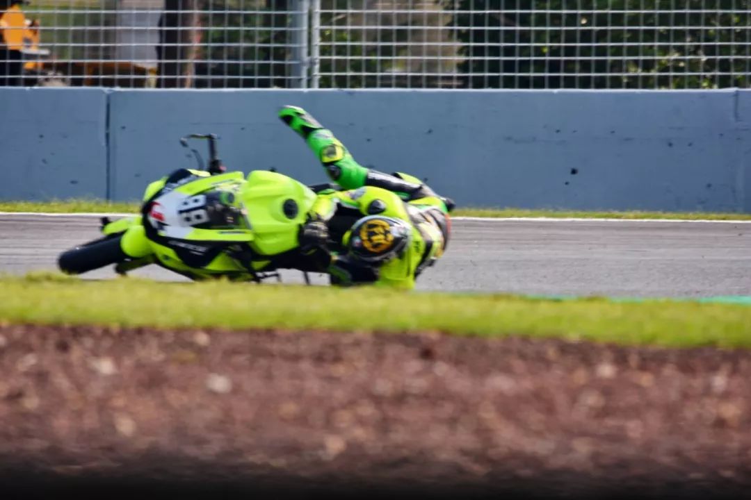 SS600 級別、在周五(八月 9 日)時候的 FP(自由練習),駕駛 99 號車、來自澳門的車手歐陽富,在 T9 彎前因為前輪失控、導致 Low-Side 低位摔倒。