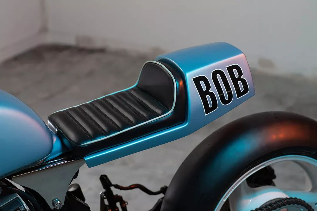 這臺Triumph Legend TT"Bob"將老英式賽車與直線加速車完美結合,車身涂裝以黑色與天藍色為主調,顏色比例在分布上也相當勻稱,相信這臺老英車即便未來不再參與賽事,小改搖臂與排氣也會是一杯濃醇香的英式老咖啡。