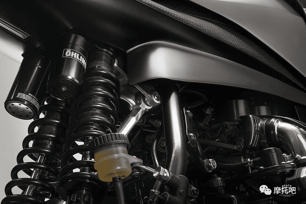這輛車的改裝部分非常大,除了車架之外,搖臂和后避震器的位置也都有了不同的配置,前后輪胎尺碼更改由120/80-18和150/60-18取代,但是GL1000原本的軸傳結(jié)構(gòu)保留了下來。
