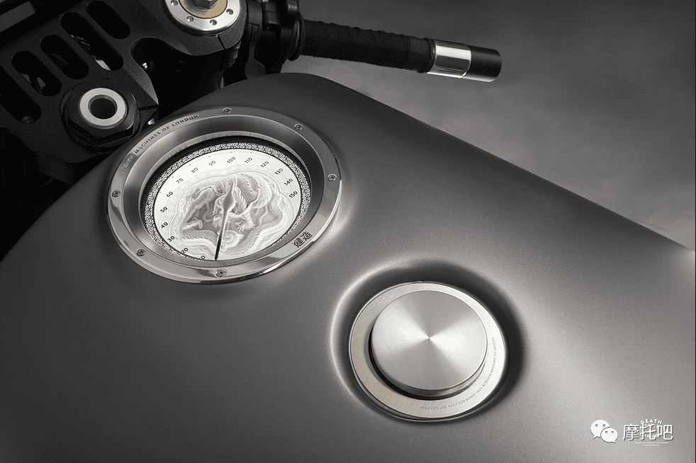 這部車在許多細(xì)節(jié)處也充滿了創(chuàng)意,例如嵌入油箱上方的儀表,就特別注入了18世紀(jì)日本珠寶盒的特征,表面甚至還雕刻出一條精致的龍。頭燈和尾燈雖然都是由Death Machines of London這個團隊自行設(shè)計,但是內(nèi)部的LED卻是借助了加州Luminit的技術(shù),因而讓光源能夠更均勻且清楚的分布于整個燈體上。