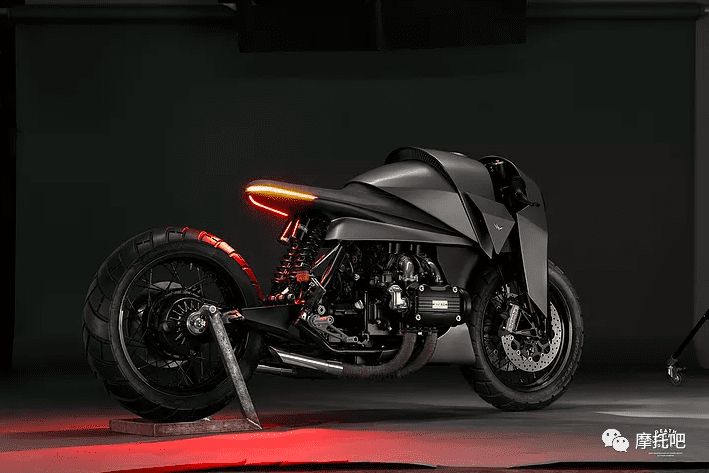 外觀上,這個改裝團隊運用了很多高科技制作技術(shù),比如從前叉到油箱都被完整包覆的外觀件,就是以3D打印的復(fù)合材質(zhì)結(jié)合輕量化鋁材構(gòu)成。從側(cè)面來看,油箱上的干凈利落的線條設(shè)計靈感不難讓人聯(lián)想是從日本武士的鎧甲而來,前叉則是以鋒利的武士刀為設(shè)計靈感。至于缸頭到底下的排氣管都完整露出的引擎,則更巧妙凸顯出GL1000水平對臥引擎的對稱美感。