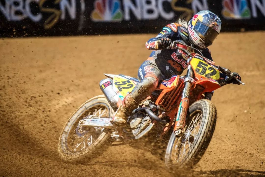 參加 AFT 比賽的 KTM 工廠車隊(duì),采用的是以越野賽車 SX-F450 為基礎(chǔ)改造而成單汽缸 FT 賽車。