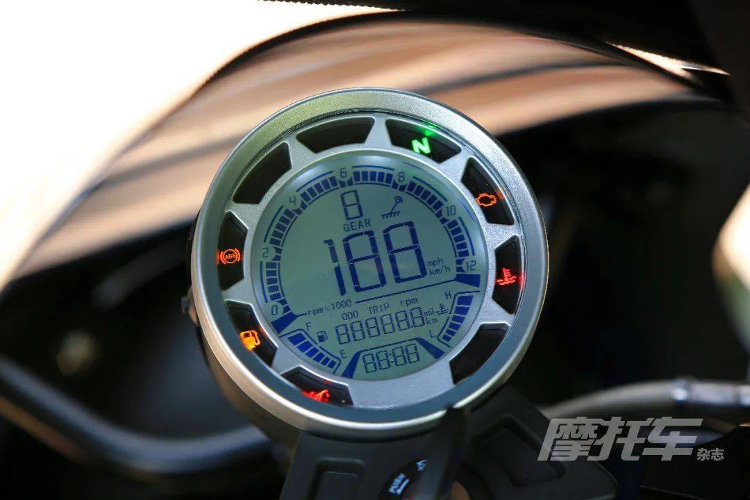風(fēng)格方面, PAGANI150有著850cm的座高,搭配較低的分離式手把和高腳踏,騎行三角有點(diǎn)類似于GPR 150,維持了 Café Racer賽車的正統(tǒng)騎姿。軸距采用1360mm靈活的短軸距設(shè)定,離地間隙143mm。圓形的復(fù)古液晶儀表小而精,除了常用信息之外還有擋顯、時(shí)間、水溫顯示等等,儀表下方CNC切削的上聯(lián)板做工精細(xì),提升了細(xì)節(jié)處的高級(jí)感。