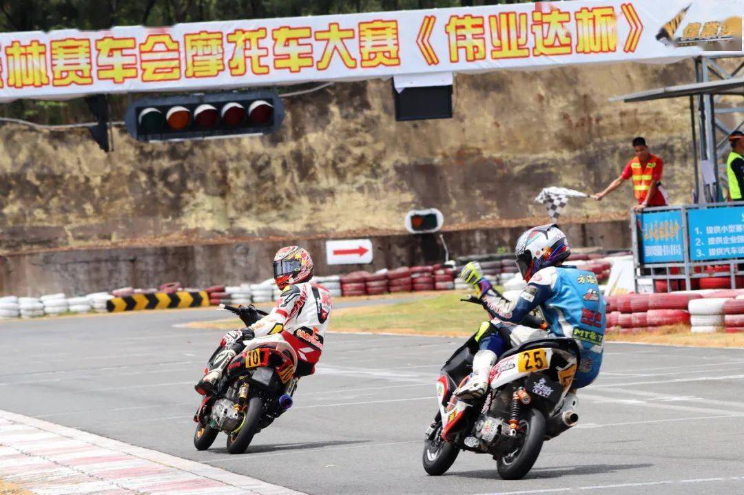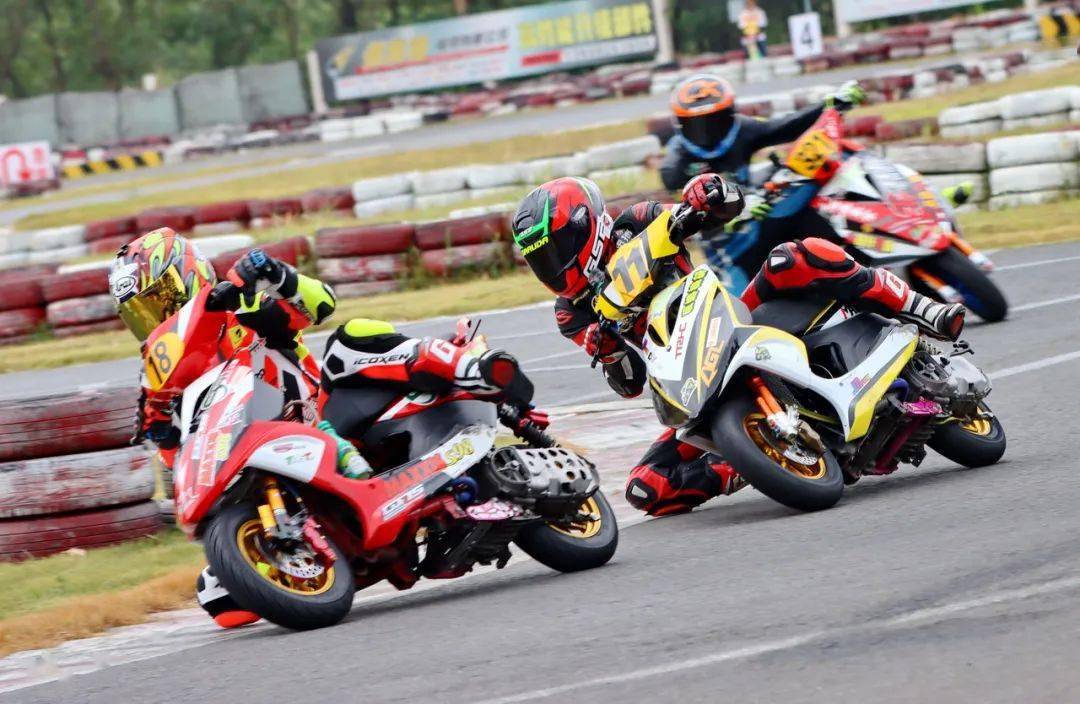 后面同樣是精彩迭起,起步之后排在第四位的倪天摔了一跤、重返跑道之后掉到了后面的第三集團(tuán)。第二集團(tuán),7 號(hào)車(chē)的陳澤凱與隊(duì)友、21 號(hào)車(chē)的吳華斌,兩人在跑道上并駕齊驅(qū)。