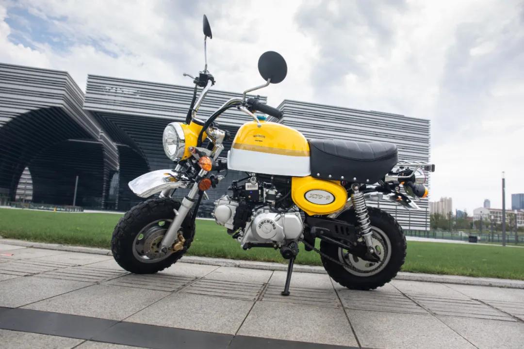 金城的這輛小車造型跟島國某品牌的一款“Monkey”很像,新款油箱容積已經增加到了8L,經濟油耗2.1升,實際騎行續航可以達到350公里。造型非常圓潤,整車黃白相間的涂裝加上黑色的坐墊,這造型像極了一只小蜜蜂,非常可愛,而開起來排氣聲也是嗡嗡嗡的。