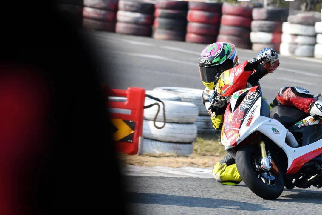 下面的圖片,參與到 2020 年度三水偉業達杯、艾瑞森輪胎改裝踏板 150 cc 公開組比賽中的吳華斌。