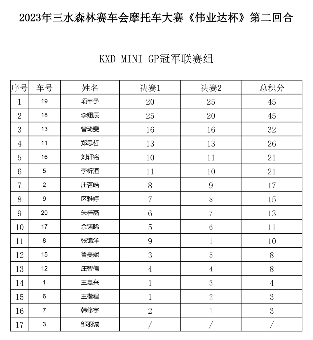 注 3:積分相同的情況下,以最佳分站成績為排前依據。