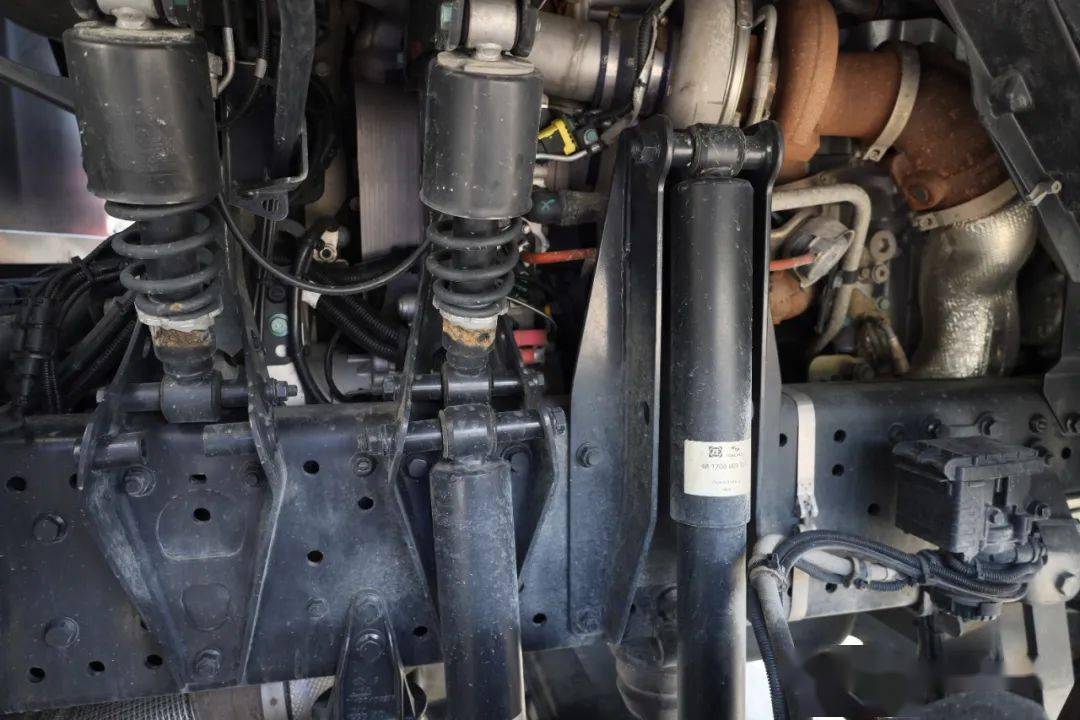 在嚴(yán)酷的沙漠環(huán)境中行駛,車輛底盤的所有部件都得到了額外的加強(qiáng),甚至連駕駛室的減震都由平時(shí)的單側(cè)一根螺旋彈簧變?yōu)榱藘筛妆P的減震筒也同樣有所增加。