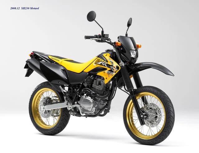 在 XR230 壽命周期的尾聲,Honda 在 2008 年二月推出了公路越野規格的 XR230 Motrad。該車基于 XR230 修改而成,有著相同的 MD36 工廠編號,動力單元同為 223 cc 的機器,但換裝了直徑為 17 英寸的前后車輪、公路型的輪胎,通過修改后懸掛的行程、鞍座高度輕微調低至 800 mm(XR230 為 805 mm)。