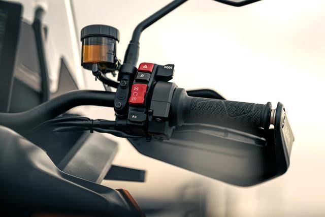 車體方面,采用一副鋼制的車架,全新的車身設計、家族臉譜化外觀的 LED 前大燈,WP 配套的新型電子感應半主動控制前后懸掛系統,全新的、豎屏設計的 8 英寸 TFT 全彩色數字式儀表板(V80),Brembo 布雷博配套的制動系統,前 19、后 17 英寸直徑的車輪、意味著該車傾向于常規鋪裝路面的運動騎行。電子輔助控制系統方面,標配了可選的騎行模式、牽引力控制系統等。