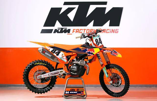 在 MXGP 級別,KTM 工廠車隊的車手組合駕駛 84 號車的荷蘭車手賀靈斯(Jeffrey Herlings),和駕駛 96 號車的比利時車手 L. 科寧(Lucas Coenen)。KTM 在這一級別使用的工廠賽車是 450 SX-F,該車搭載一副水冷四沖程單氣缸、SOHC 四氣閥發動機,缸徑、行程為 95 mm x 63.4 mm ,排氣量 449.9 cc,市售標準版的最大動力輸出超過 63 匹(非 KTM 官方正式數字),而經過特別改造的工廠賽車版、預計峰值馬力輸出將超過 70 匹。