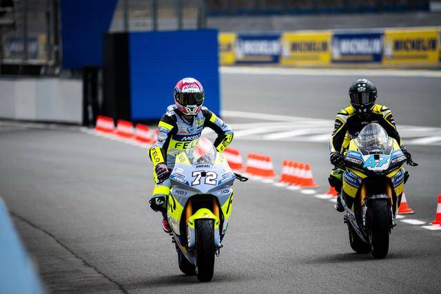 昨天周末、MotoE 進行了兩節正式比賽。第一節比賽,發車后不久就發生了嚴重意外,比賽被紅旗所終止。重新發車,原定 8 圈的比賽縮減為 4 圈;起跑后,法拉利搶回了一些位置,但到第 2 圈時不慎摔倒、提前結束了與對手的較量;費內洛則不斷加速,最終獲得了第十名。