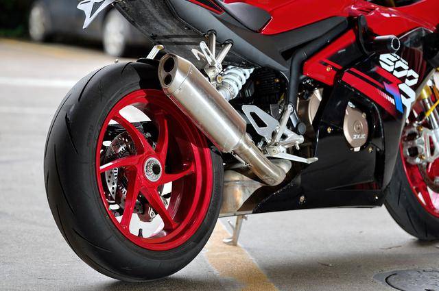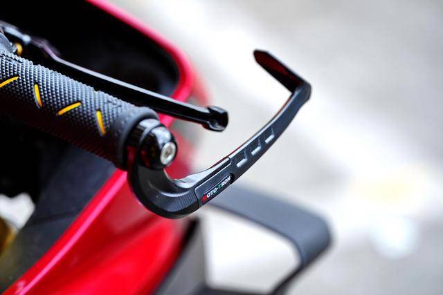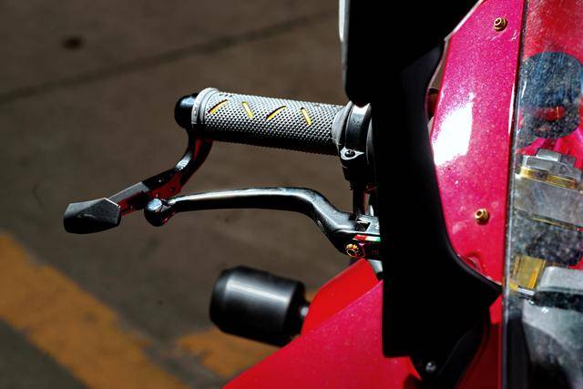 下圖的這輛經過小幅度修改的 500RR 是后單搖臂版,一對徑向安裝的 Brembo 布雷博前剎車卡鉗、以及 RCS 上剎車泵,是這輛 “ 怡情小改 ” 之跑車的焦點;輔以輕量化的金色螺栓、Moto-Tron 的離合器拉桿(離合牛角)和護弓、防摔護桿等作為點綴 —— 再改下去,既難以在國內當前的公共道路上 “ 免檢 ”、其成本也將輕松超越購車的金額。
