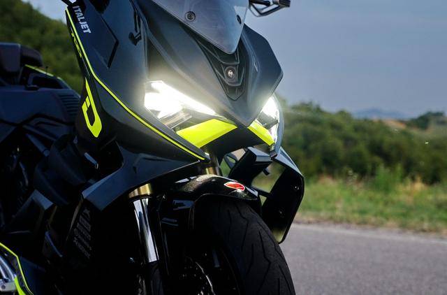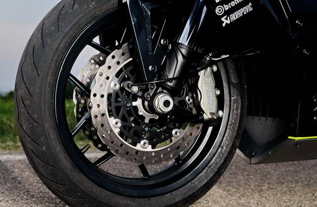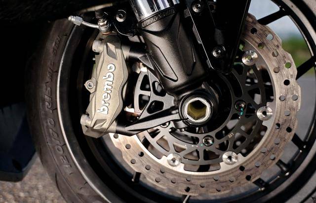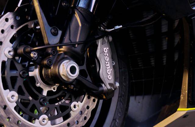 車體方面,采用全外露設計的鋼管式車架,Dragster 系列車型臉譜的外觀造型、配備了多處的空氣動力組件;懸掛系統方面,采用了 Marzocchi 配套的倒立式前叉,Ohlins 奧林斯配套的后減震(左側偏置式安裝的設計)和轉向阻尼器;前 270 mm 雙碟、后 260 mm 單碟的制動系統,Brembo 布雷博配套的剎車卡鉗、標配了 ABS;直徑為 15 英寸的前后輪框標配了超寬的 160/60 - 15 輪胎,全 LED 光源的燈光系統,數字式的儀表板等。