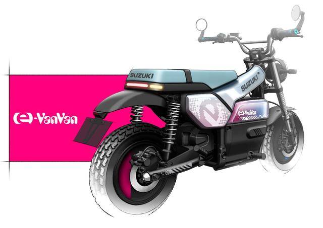 Suzuki 將在今年的展會上,首次公開展示全新的電動概念車 e-VanVan。VanVan 是 Suzuki 在上世紀七十年代首次推出的休閑型兩輪越野車/全地形車名字,新 e-VanVan 概念車則是在外觀上、借鑒了 VanVan 的一些元素,并加入了現代的線條和技術而成。廠方稱,在綜合性能上,e-VanVan 概念車類似于排氣量為 125 cc 的燃油車。