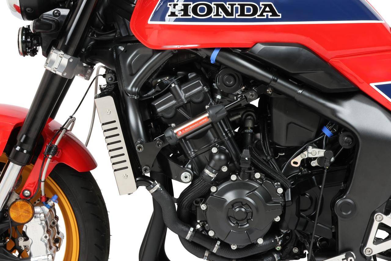 ACTIVE改裝套件重點經典復刻涂裝:車身采用鮮艷的紅色配藍色條紋,致敬1979年CB900F(日本CB750FZ)的經典「BOL D'OR」配色。