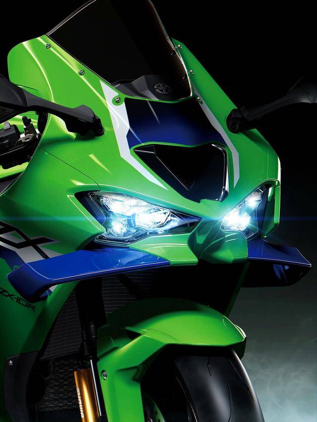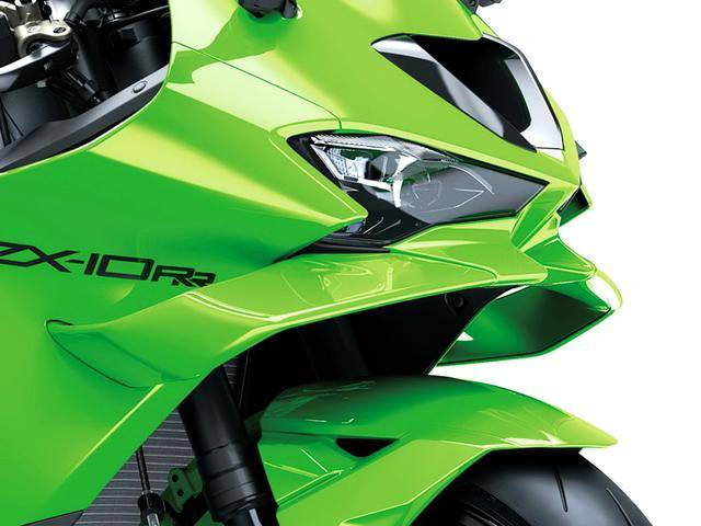 1、標(biāo)志性的變化,是新的整流罩造型和新增的空氣動(dòng)力學(xué)組件:新的車頭整流罩,以配合緊湊型設(shè)計(jì)的投影式 + 反射式混合新型 LED 前大燈,Ram Air 進(jìn)氣口經(jīng)過(guò)重新定位,而突出的、新的定風(fēng)翼則為 Ninja ZX-10R 系列賦予了 2026 的 “ 新面孔 ”;