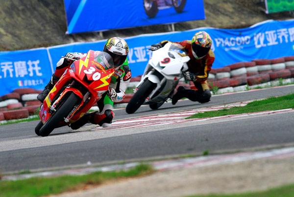 比亞喬踏板125CC組有22名車手參賽,其中包括新蜂女子車隊陳丹丹及李睿紜兩位女車手。結果來自西安幼獸王車隊的李宗在第一回合中以10分46秒的成績排在第一,上海51車隊的章文俊緊隨其后,而排在第三位以個人名義參賽的劉展鵬以不到1秒的劣勢屈居第三。來自新蜂女子車隊的兩位女車手表現出色,李睿紜排在第四位,陳丹丹則排在第五位。