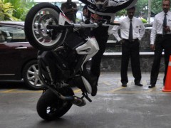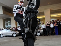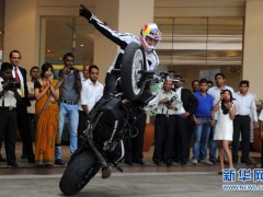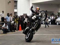 28日,在斯里蘭卡首都科倫坡進(jìn)行的摩托車特技表演。