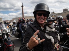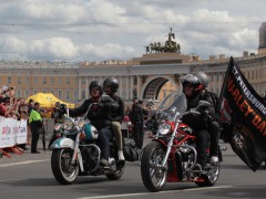 當?shù)貢r間2016年8月13日,俄羅斯圣彼得堡,一年一度的“哈雷日”在冬宮廣場(Palace Square)舉行,數(shù)千摩托車粉絲前來參加。
