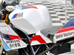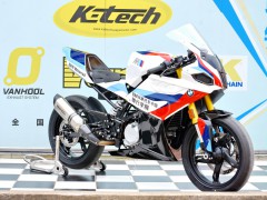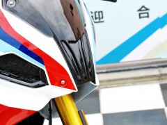 現(xiàn)場看到的這臺 “ 跑車版 ” G310 R,最顯眼的改動部分、莫過于有著超級跑車 S1000RR 風(fēng)格的全車外殼,從車頭的整流罩、到短而尖的尾部,再配以白色主調(diào)、紅藍(lán)線條的標(biāo)志性圖案,讓整臺車流露著 WSBK 工廠賽車的影子。從自己的角度去看,眼前的這個(gè)模樣,要比印度 TVS 的跑車量產(chǎn)版、有著更多寶馬的印象。