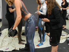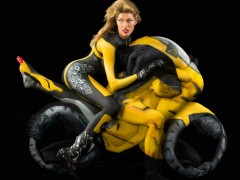 美國舊金山的藝術(shù)家Trina Merry為全裸的模特涂上彩妝,組合成了創(chuàng)意的“人體摩托車”。