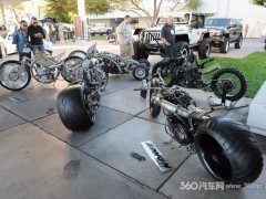 這些概念摩托車被放置主禮堂外的顯著位置,造型十分的奇特,有兩輪也有三輪,后面的輪胎都相當的大。這些摩托車有五個全新的關鍵概念部件:The RK S、RK Spring Frame、RK Chain、RK Thing以及一個叫不出名字的圓形框架。其設計者Rafik Kaissi發誓說,雖然真的不知道用什么語言來形容它,但它們卻的的確確可以用于乘坐。