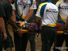 悉尼當地時間9月17日,紅牛X-FIGHTERS車隊繼續摩托車特技世界巡回表演,眾多摩托好手空中曼舞,各種高難度動作奪人眼球。一位車手在表演中不慎失去重心跌落在地,被擔架緊急抬離現場。